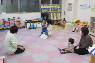 その間、子どもたちは、お母さんのそばにいたい子は一緒に座ってしたり、お母さんから離れられる子は好きな遊びをして過ごしました(^^)